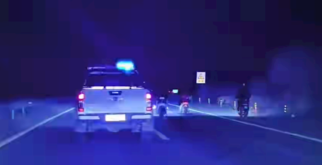现场画面清晰,夜色中5辆摩托车横向并列,占满双向车说念,以慢慢速率上前行驶,将全球说念路变为“专属通说念”。