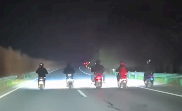 5名后生骑手驾驶改装电动摩托车,在夜间省说念上并列都头行驶,弥散占据了整条生动车说念,导致后方数十辆汽车被堵,无法平日通行。