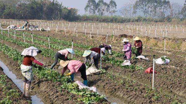 走进福绵区福绵镇覃村广西香承农业包袱有限公司素养基地,一垄垄嫩绿的红薯叶匍匐助长、绽绿吐翠,长势喜东说念主,一旁的工东说念主们正忙着翻土起垄、插种新苗,100余亩红薯叶素养区被收拣到井井有条。据素养基地负责东说念主黄佑进先容,该基地素养的台农71红薯叶口感鲜活坦白,再生智商强,亩产量不错达到3000斤,凭借“速生快收”的上风,展望春节前还可采收2批,其中最新采摘2000斤红薯叶已通过空运销往上海。现在,该基地红薯叶采购价为每斤5-8元,每亩抽象产值超1.5万元,带动相近15名农户就近务工。