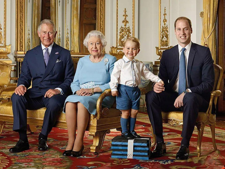 最重磅的,莫过于书册的压轴像片——那张为女王90岁生日发布的“四代同堂”经典肖像。画面中,女王与三位嫡系收受东说念主同框:其时的查尔斯王子、威廉王子以及乔治王子。