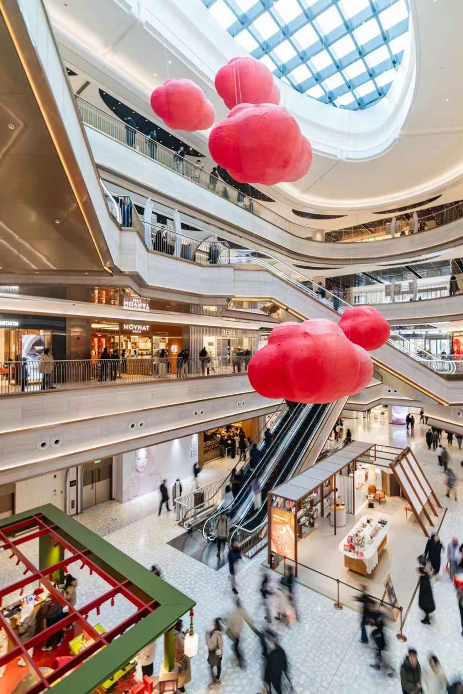 2月5日至3月初,前滩太古里于市集各人空间中打造“鸿云当头”新春氛围好意思陈矩阵,从石区L1层中庭到中央公园东大草坪的许诺树,从室外地标到室内跃层漫衍,让耗尽者穿梭在祥云、灯笼之间,在高浓度的考取好意思学场域之中,感受更多“年味”氛围。