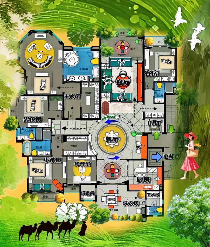 好看喂餐厅,504㎡一下登上大雅不登大雅,景象技巧含量,真不高,动线阅兵也庸碌,全靠22个空间,体现大平层的景象!