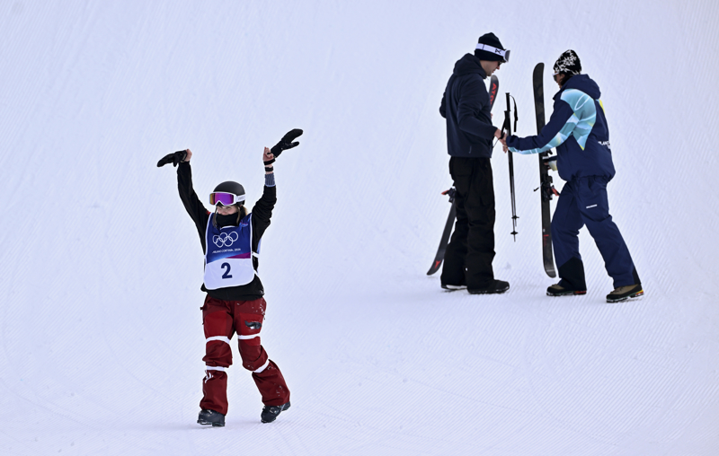 瑞士选手玛蒂尔德·格雷莫德在比赛中庆祝。她赢得冠军。 新华社记者 张宏祥 摄