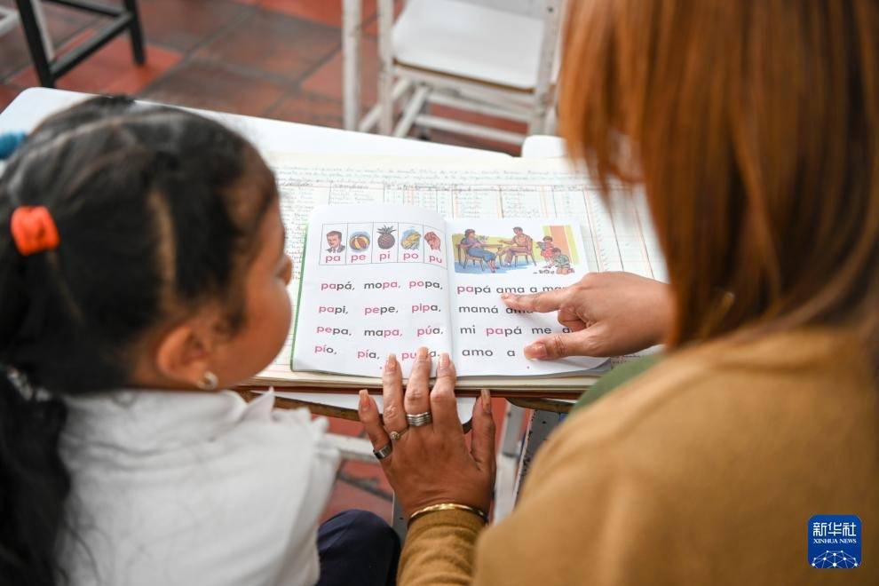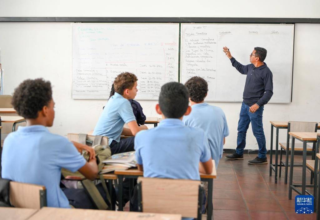 1月12日,在委内瑞拉皆门加拉加斯一所公立学校,淳厚教授生读课文。
