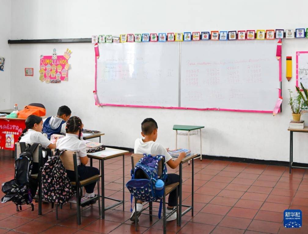 1月12日,在委内瑞拉皆门加拉加斯一所公立学校,几名学生在教室学习。