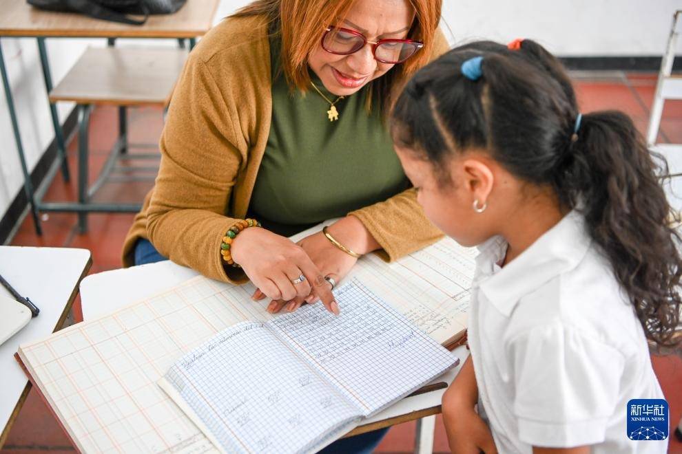 1月12日,在委内瑞拉皆门加拉加斯一所公立学校,淳厚查抄学生功课。