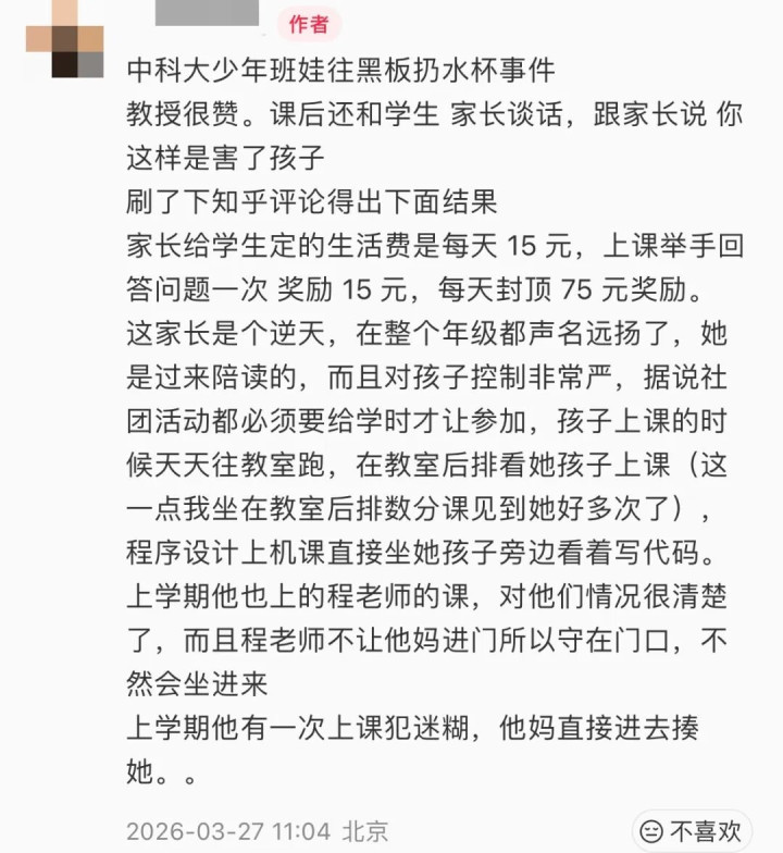 那名在中科大少年班课堂上扔保温杯的男生,他的同学出来更新了后续: